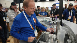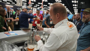 Another crowd pleaser at both the HVG Hospitality Suite and RahrBSG Village was Heller Bock from lager-centric Goldfinger Brewing Company (7% ABV). The beer features Weyermann® Pilsner Malt and Weyermann® Munich Malt, and what one attendee lovingly described as a “HVG hop salad” of Hallertau Mittelfruh, Saphir, Tradition, Hersbrucker. Goldfinger first brewed the beer in collaboration with HVG for CBC 2024, and it won a Top 20 Beers of 2024 nod from Craft Beer & Brewing, so they brewed it again this year. Rich malt flavors of yellow cake and candied almonds with mouth-warming alcohol, plus a melange of hop notes from earthy and herbal (rosemary, dill) to piney made this not-your-average Maibock brew.